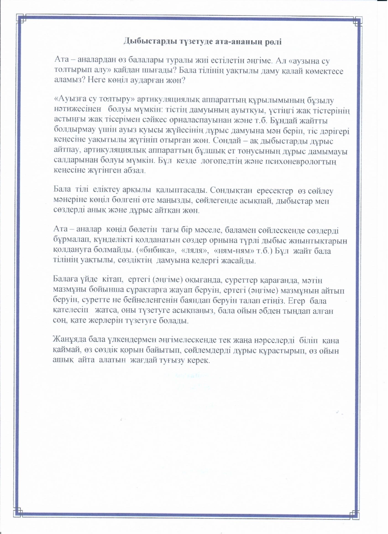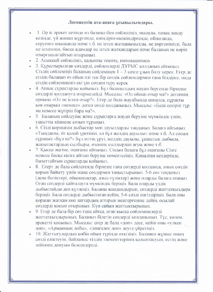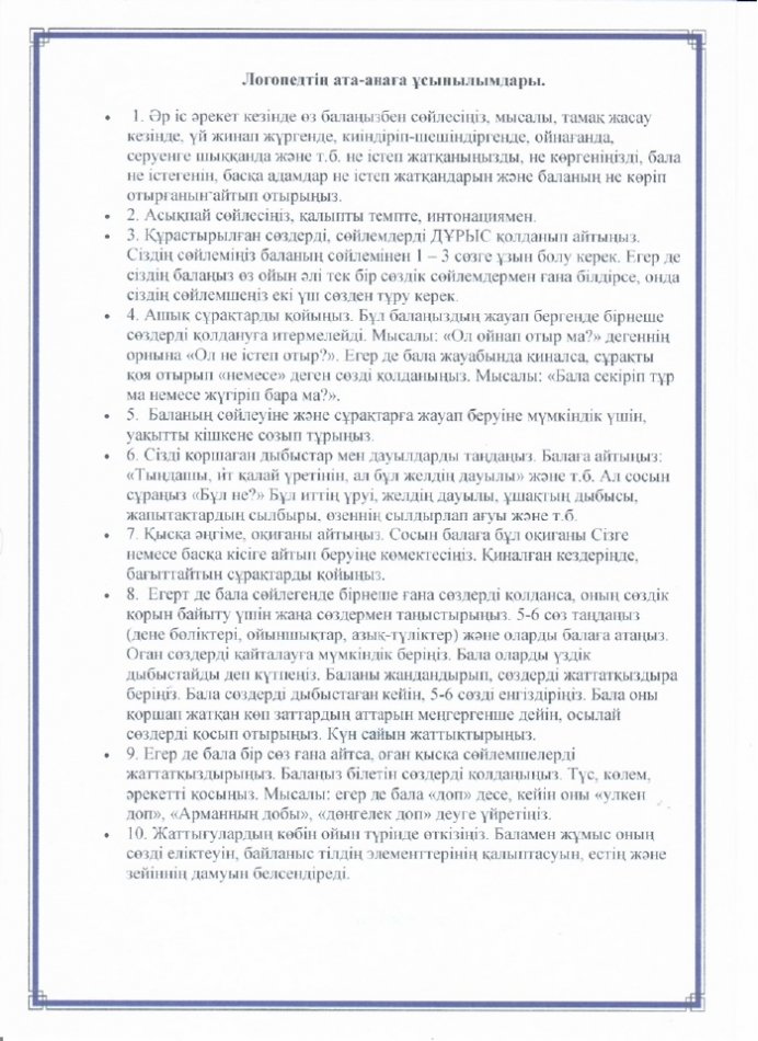 Логопед маманының кеңесі » №37 "Бәйтерек" бөбекжай-бақшасы