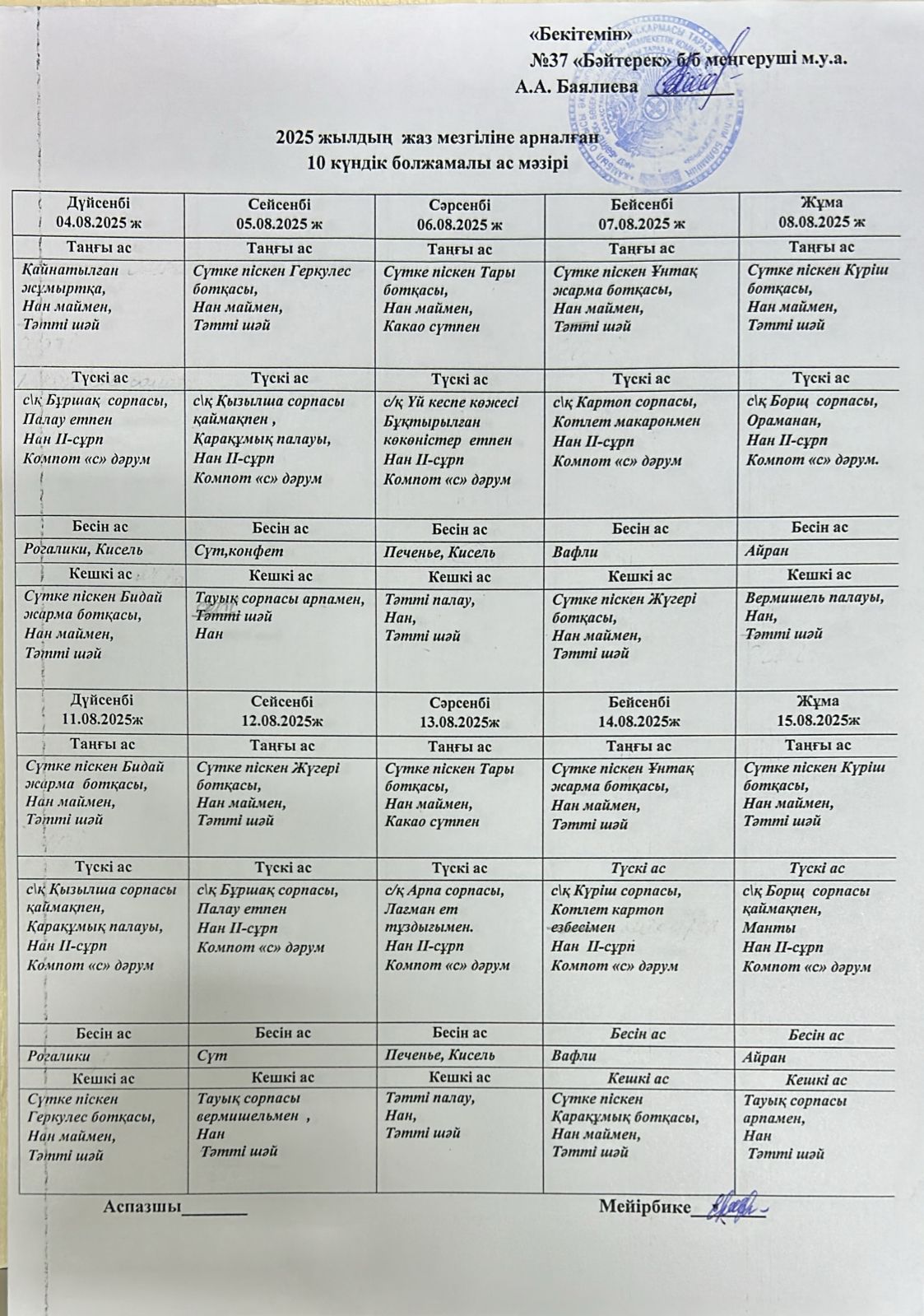 2025 жылдың жаз мезгіліне арналған 10 күндік болжамалы ас мәзірі » №37 "Бәйтерек" бөбекжай-бақшасы