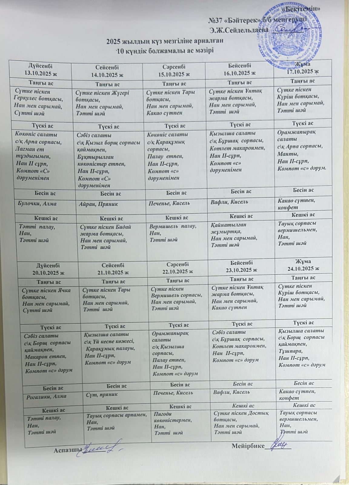 2025 жылдың күз мезгіліне арналған 10 күндік болжамалы ас мәзірі » №37 "Бәйтерек" бөбекжай-бақшасы